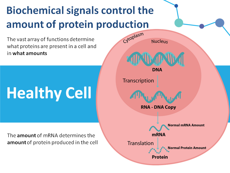 o restore normal protein levels, we send signals to the cell’s protein synthesis machinery. These signals instruct the cell to increase or decrease production of specific proteins, from abnormal levels that cause damage, to healthy levels that enable repair.